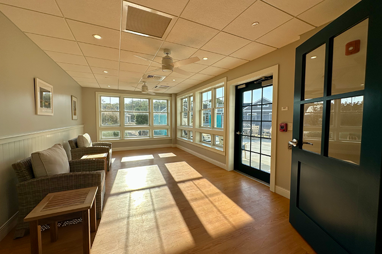 LWDA is working with Navigator Homes and Martha’s Vineyard Hospital to design a replacement for the Windemere Nursing and Rehabilitation Center. Each of 5 homes will house 14 elders, and will include individual bedrooms, bathrooms, and kitchens for all residents. Each home features a large living area surrounding a hearth for congregating and activities, and a screened-in porch that overlooks the secure pocket park.