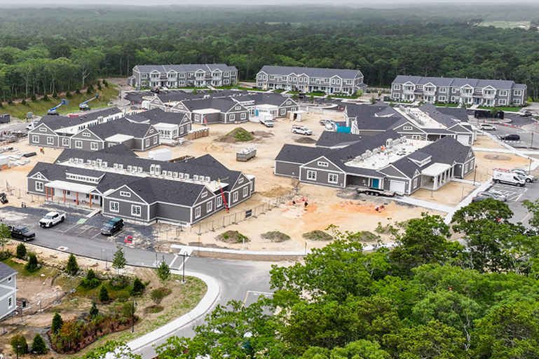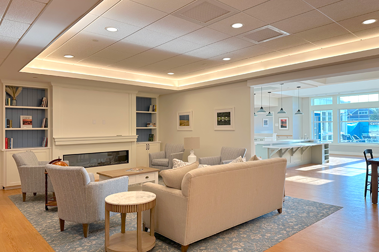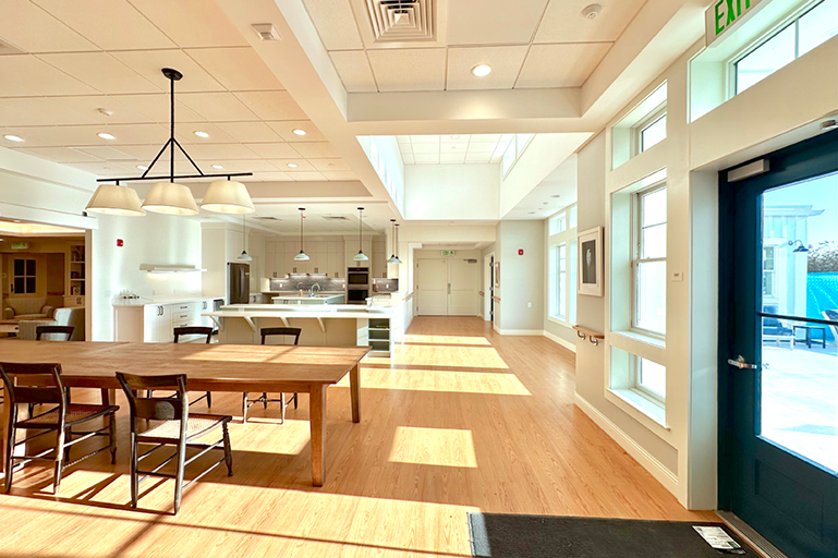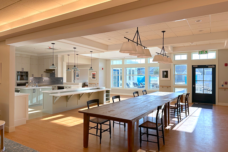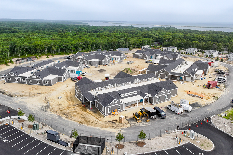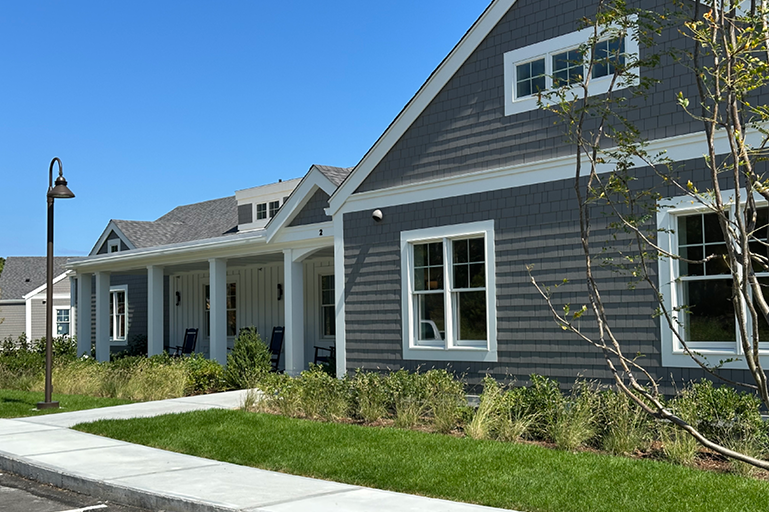 LWDA is working with Navigator Homes and Martha’s Vineyard Hospital to design a replacement for the Windemere Nursing and Rehabilitation Center. Each of 5 homes will house 14 elders, and will include individual bedrooms, bathrooms, and kitchens for all residents. Each home features a large living area surrounding a hearth for congregating and activities, and a screened-in porch that overlooks the secure pocket park.